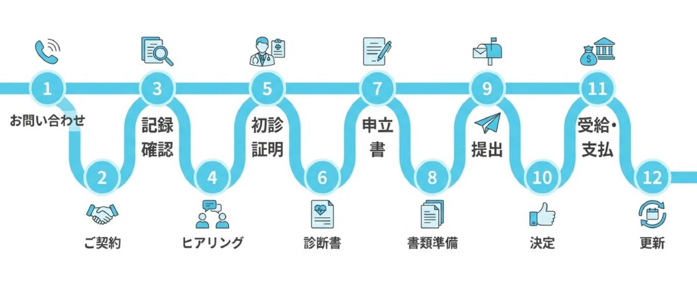 作成は当事務所が行い、診断書などの書類との整合性を確認しながら、適切な内容に仕上げていきます。